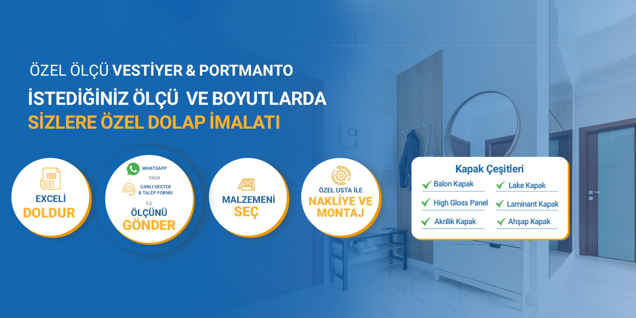Vestiyeriniz üretilirken ücretsiz tasarım yapılır. Vestiyerinizin çekmece, raf, kapak gibi ayrıntıları kulp, tac ve ayaklarını zevkinize göre seçebilir; tarzınızı yansıtan, dayanıklı ve şık kapaklarımızla yaşam alanlarınıza değer katabilirsiniz.
